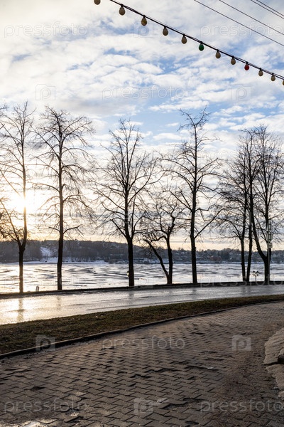 Дорога по набережной реки в городе Кострома