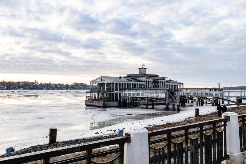 Пирс на замерзшей реке в Костроме зимой