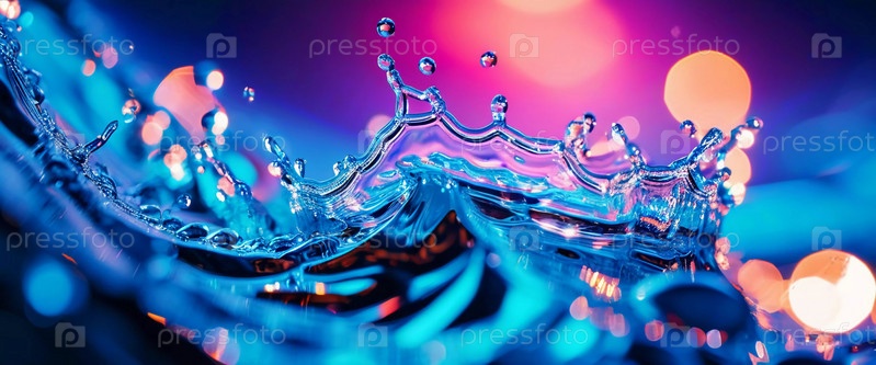 Множество ярких капель взрываются красочным всплеском, создавая потрясающую демонстрацию ярких оттенков на мягко размытом фоне. Застывшее движение. Красота природы в данный момент. ИИ