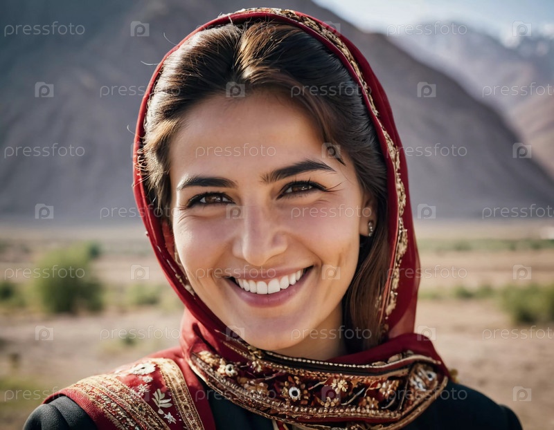 Таджикская женщина 30 лет грациозно стоит, демонстрируя свой традиционный наряд на захватывающем фоне гор и сочных зеленых полей, отражающих ее культурные корни. Сгенерировано с помощью ИИ