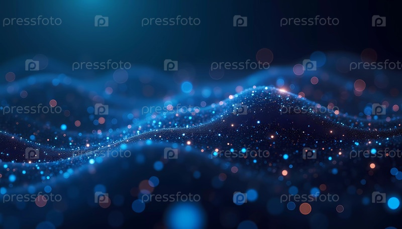 Композиция включает в себя плавные синие линии и светящиеся узлы, которые представляют сложные взаимодействия больших данных в цифровой среде. Футуристический вид подчеркивает технологию и связь. ИИ