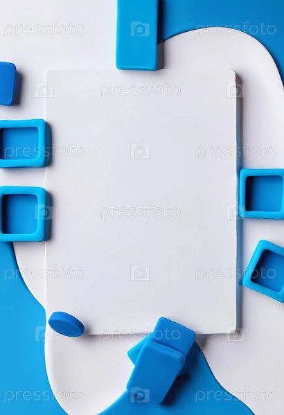 Яркий абстрактный фон из сине-белых фигур из пластилина окружает пустое пространство, идеально подходящее для художественных проектов, поделок или игровых занятий