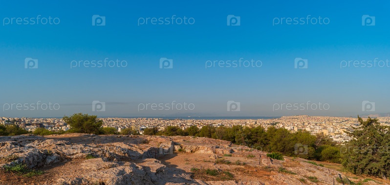 Панорамный вид на Афины и пригородные города с холма, Греция