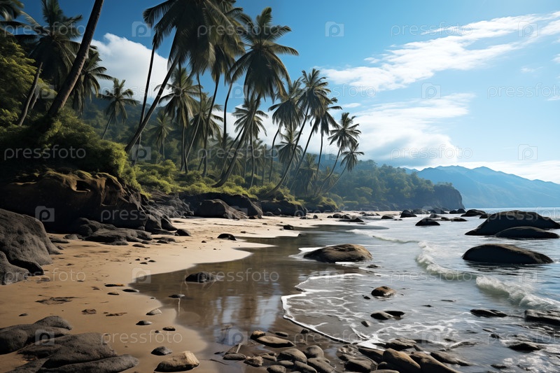 Тропический прибрежный пейзаж, дикий берег на краю пальмовых джунглей