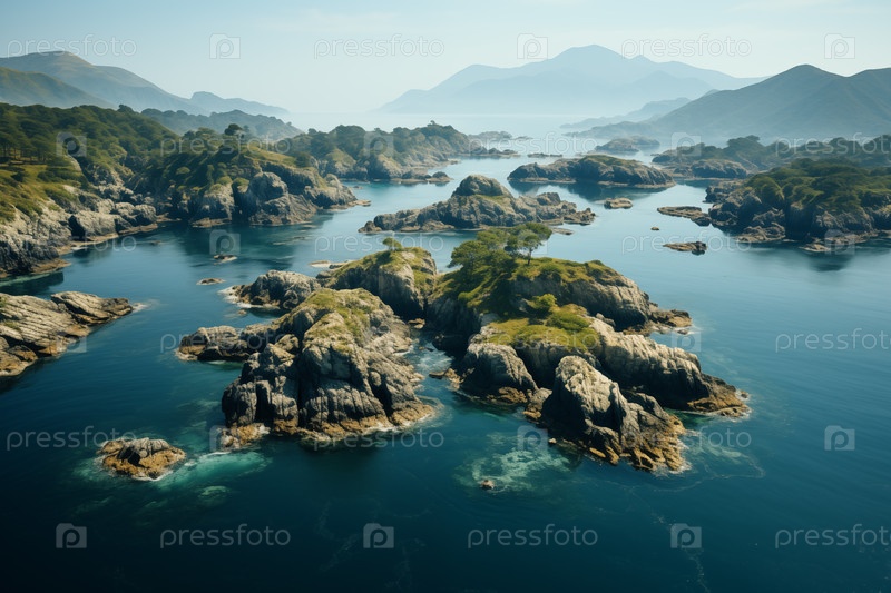 Морской пейзаж, вид сверху на множество небольших островов