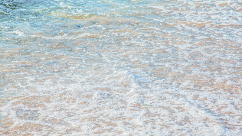 Кристально чистая лазурная вода с морской пеной, морской пейзаж на заднем плане