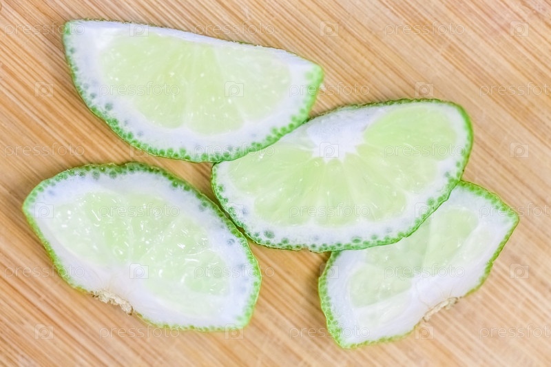 Ломтики лайма на деревянном столе, крупный план размытого фона