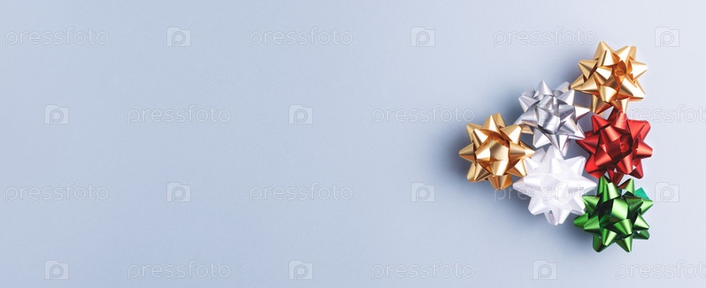 Сорливые бумажные подарки обертывающие лука на серо-синем фоне