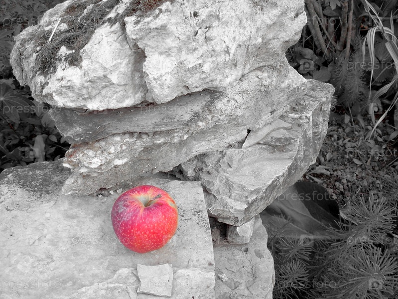 Красное яблоко на камне