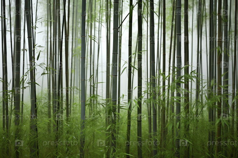 Горный бамбуковый лес в туманную погоду, фон, пейзаж,