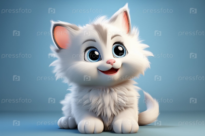 Милый белый котенок с голубыми глазами на синем фоне