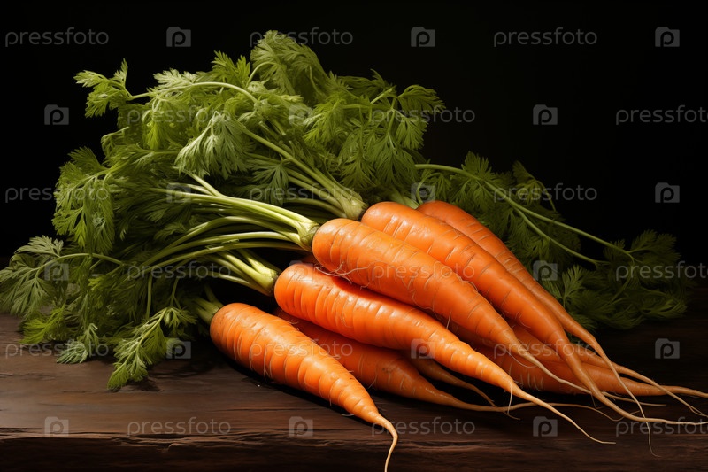 Группа оранжевой моркови на столе на темном фоне