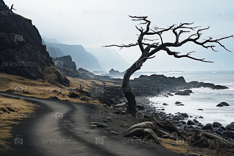 Пейзаж туманного холодного пустынного побережья