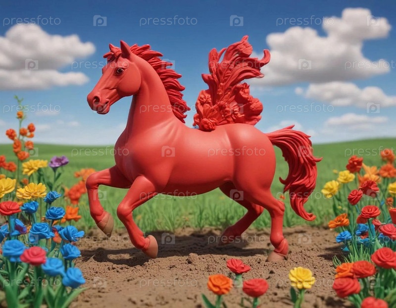 красный огненный конь бежит в поле