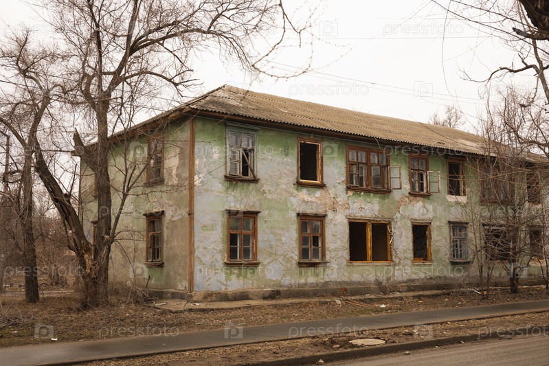 Подготовка ветхого жилья к сносу. Заброшенный дом без жильцов