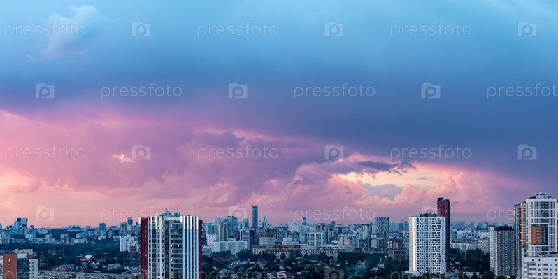 Рассветные облака над мегаполисом раннего зимнего заката в Екатеринбурге