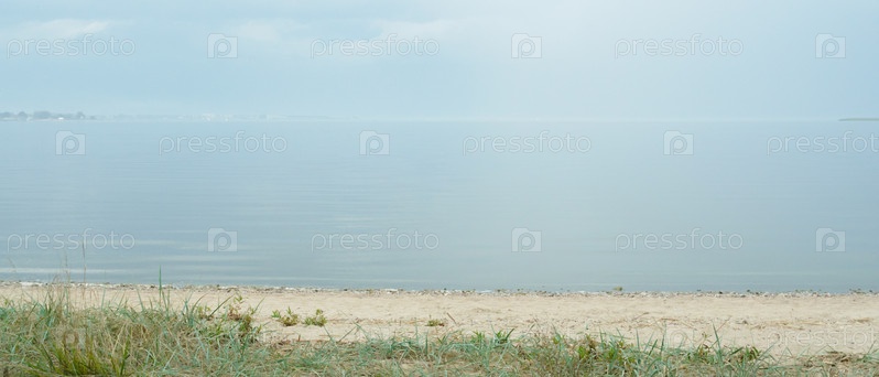 Спокойное большое озеро туманным утром
