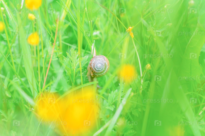 Желтые цветы среди зелени на лугу селективный фокус размытый фон