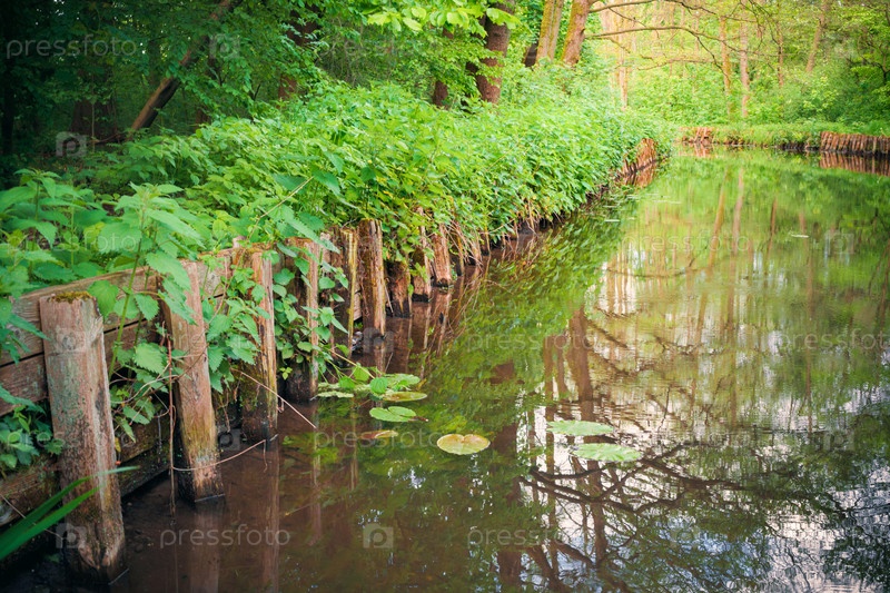 Спокойная река, текущая через зеленый лес