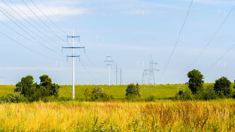 Высоковольтная электрическая опора и электрический провод на поле