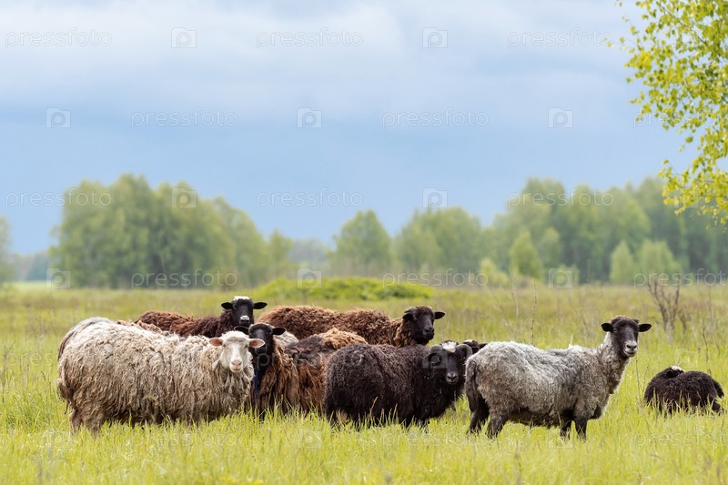 Ягнята и овцы зеленая трава