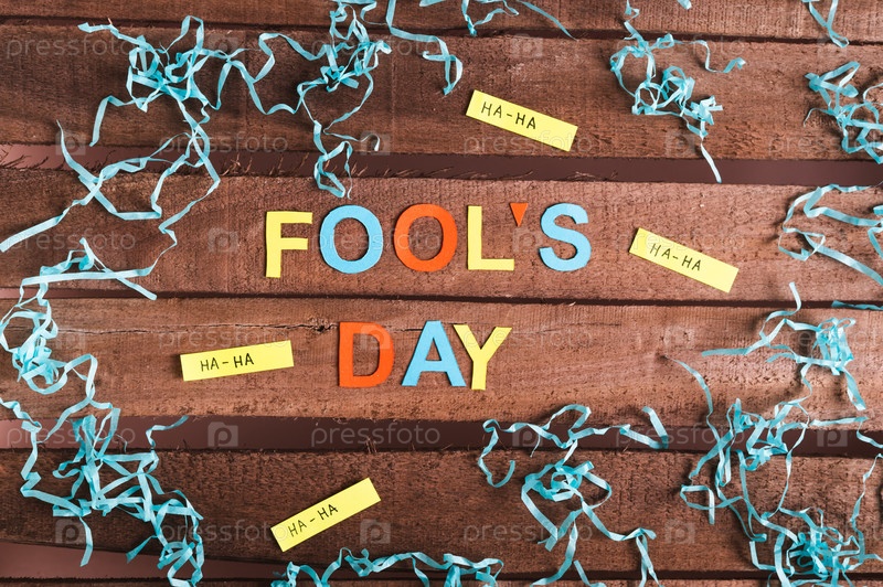 День смеха, сделанный из цветных букв, забавных заметок и бумаги на деревянном фоне