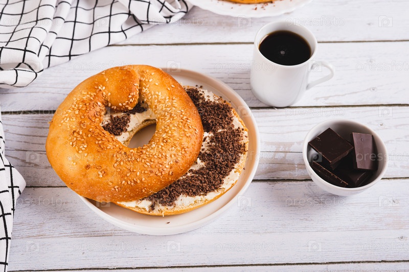 Сладкий сэндвич с маслом, шоколадом и кунжутом на тарелке на столе