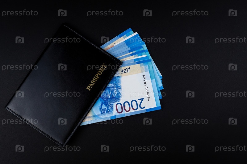 Российский паспорт и рублевые купюры