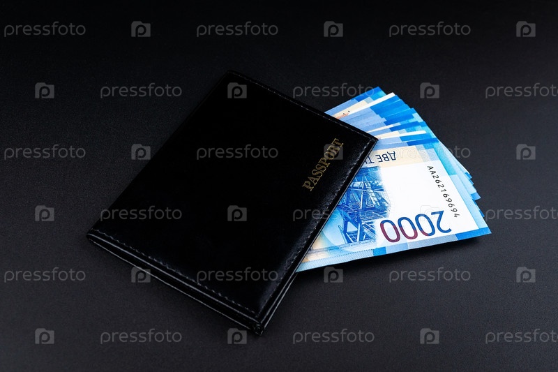 Российский паспорт и рублевые купюры