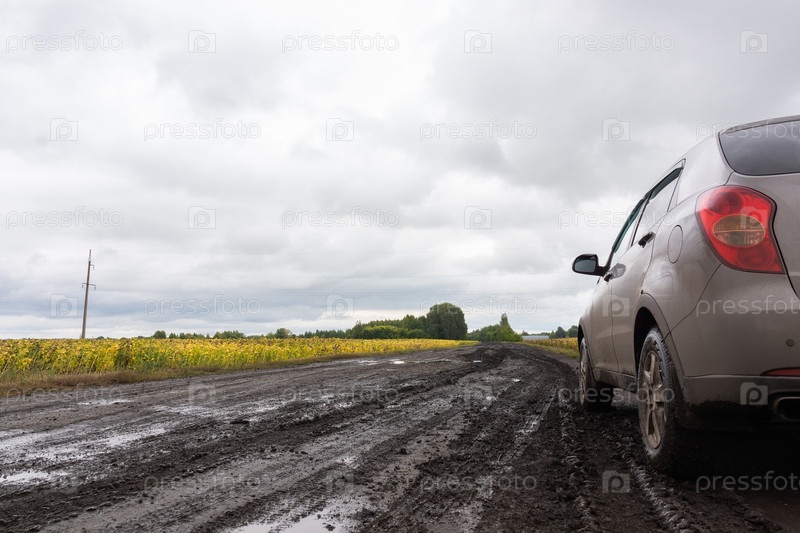 Фрагмент автомобиля в осеннем пейзаже