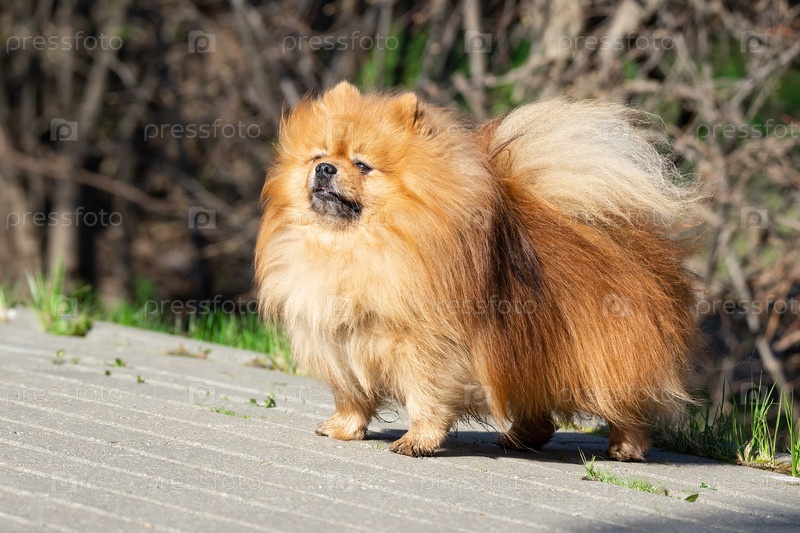 Милая собака шпиц на природе