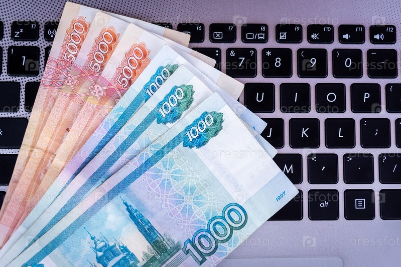 Деньги на клавиатуре ноутбука