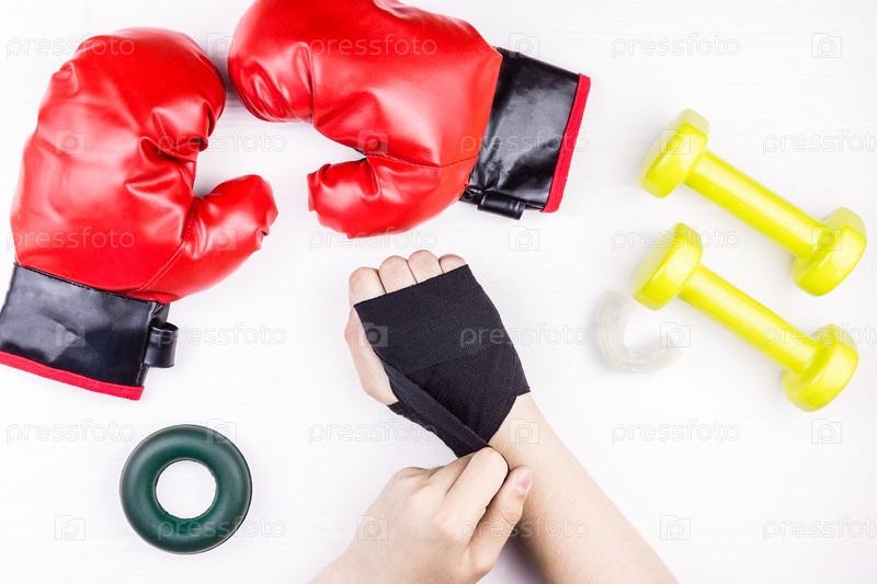 Боксерские перчатки и лапа