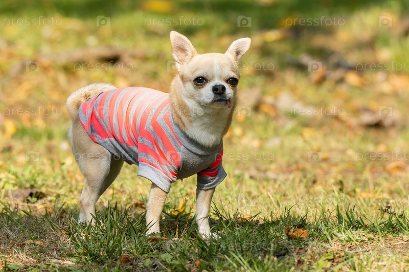Собака чихуахуа на траве