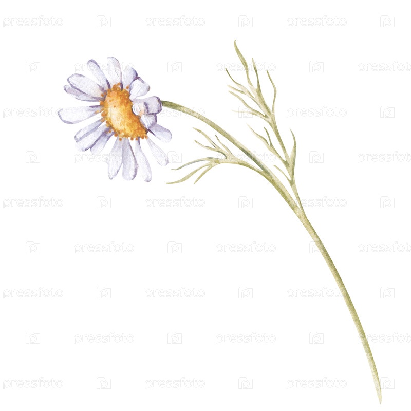 Белая ромашка нарисована вручную. Акварельный полевой цветок на белом фоне. Ботаническая иллюстрация. Клипарт подходит для открыток, баннеров, обоев и других дизайнов