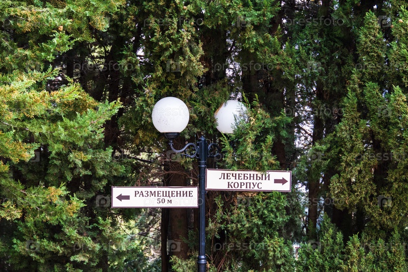 Фонари с навигационными указателями. Санаторий «Кирова». Ялта. Крым