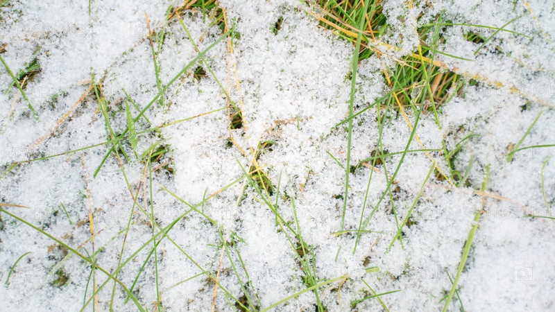 Зеленая трава, покрытая снегом, фон