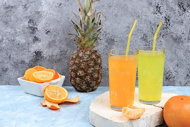 Детокс диета и концепция летней вечеринки. Холодный домашний коктейль или лимонад с розмарином, апельсином, льдом и ананасом, рецепт освежающего летнего диетического напитка, меню ресторана, селективный подход