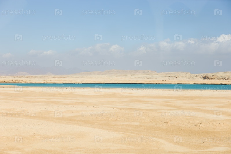 Пустынный пейзаж с водоемом