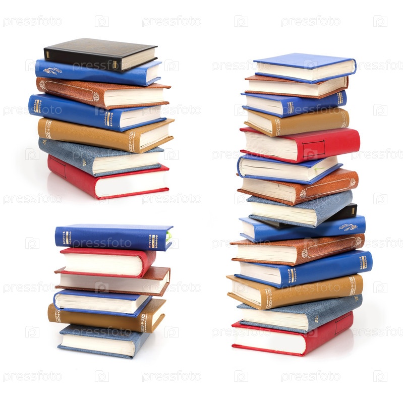 Стопка книг в цветных обложках с белыми листами, изолированных на белом фоне