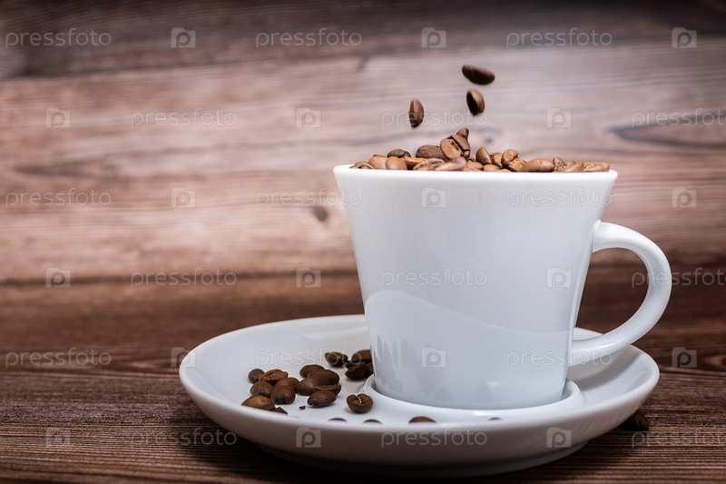 Чашка кофе на коричневом фоне