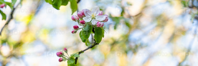 Цветущие яблони, выборочный фокус, размытый фон