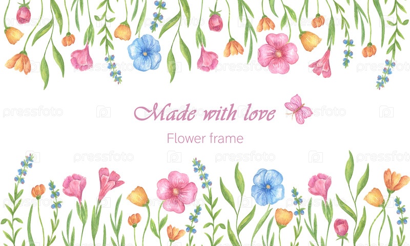 Горизонтальная открытка с цветочным узором, шаблон, место для текста
