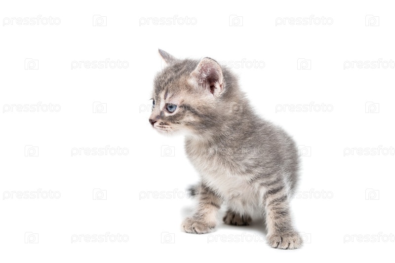 Серый котенок на белом фоне