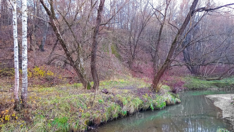 Деревья у лесного ручья. Пейзаж ранней весны