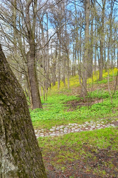 Весенний пейзаж с первой зеленью и основными цветами в солнечный день. День Земли