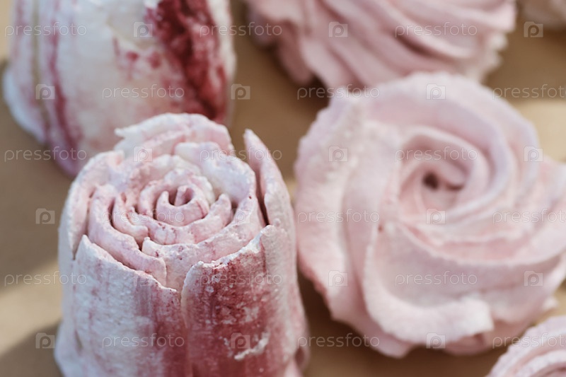 Тюльпан из зефира. Домашний зефир разложен на столе для просушки. Крупный план