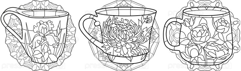 Декоративные винтажные чашки. Иллюстрация, нарисованная вручную