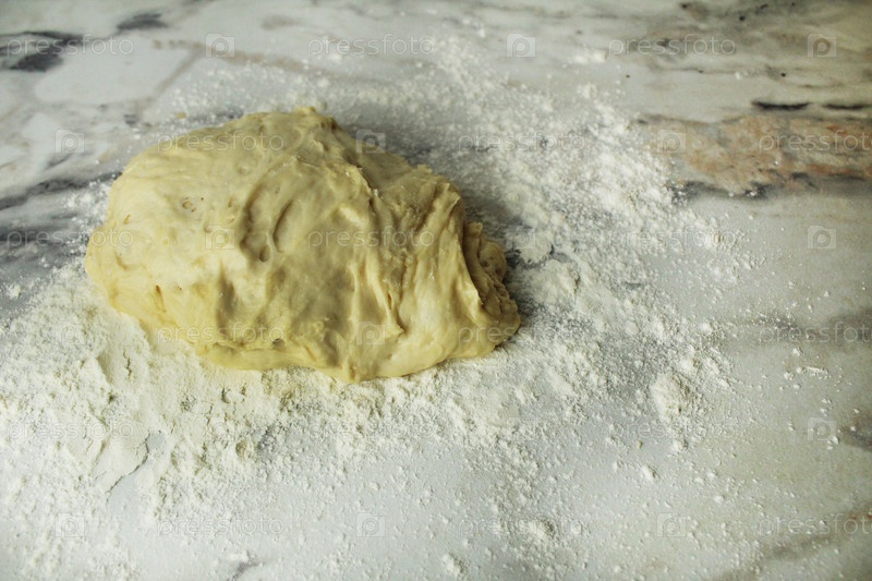 Сырье дрожжевое тесто вид сверху copyspace