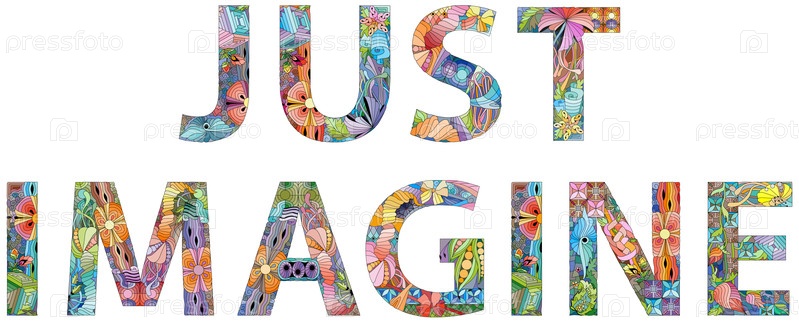 Ручная роспись художественного дизайна.Ручно нарисованные иллюстрации со словами JUST IMAGINE для футболок и других украшений